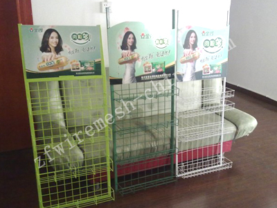 組成(chéng):展(zhǎn)架(jià)背網+鋼管框架+展示架網籃